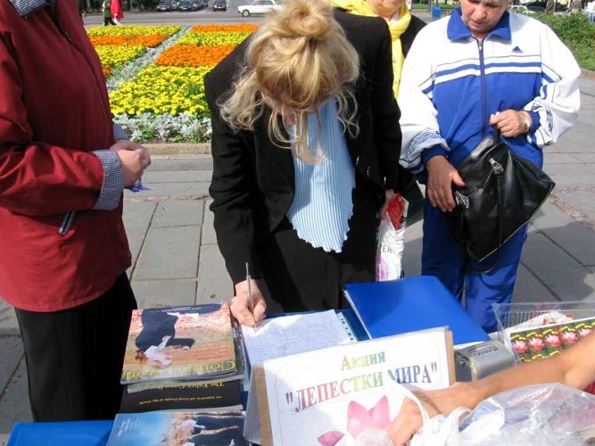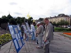 由于是中心广场,又是市民们去该城最大的综合市场的必经之地,活动现场从始至终聚集了很多人,大批民众得闻了真象。很多人久久不愿离去,有的现场向学员们学功,有的進一步了解修炼的事情并询问在哪里能买到法轮功的书,有的则关心遭受迫害的中国法轮功学员的情况,问如何能帮助他们。人们都被法轮功学员的平静祥和所感动,纷纷表示说在这个广场上经常有不同组织举办的各种各样的活动,但从来没有看到过这样一群安静的活动组织者,即使面对不同意见也没有争吵和辩论,而是坦诚的交流。