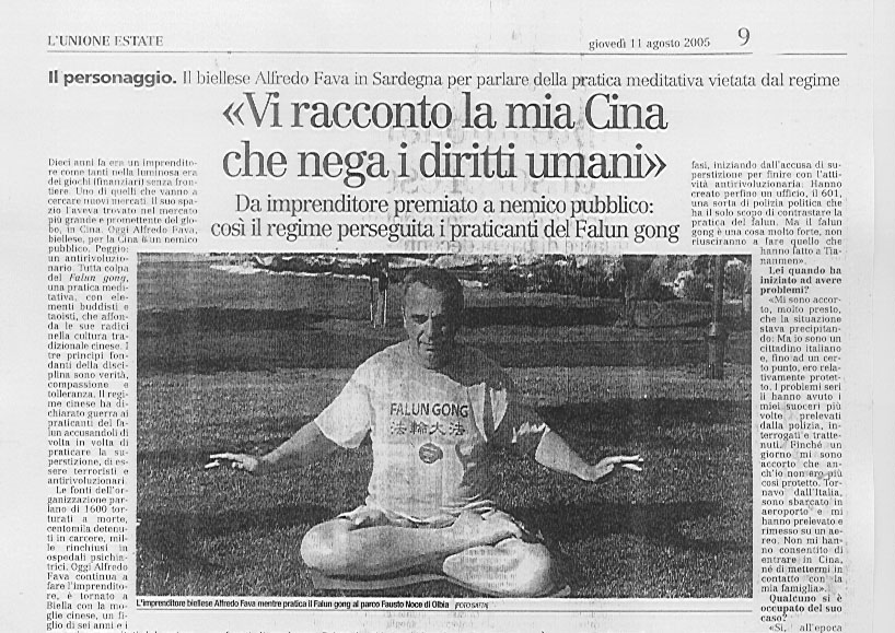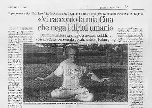 在全岛发行的日报─《撒丁岛联合报》的记者卡特琳娜,用了一个版面报导了法轮功学员的故事,并揭露了中共迫害法轮功学员的事实。