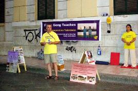在撒丁岛的各个城市里,自然少不了中国同胞们。学员们在撒丁岛还看到了敢于讲真话的华人电视─新唐人电视台的节目;于是学员们就拜访了当地由中国人经营的店铺、餐馆和工厂等,告诉人们这一消息,请他们开阔眼界,了解真象。许多华人同胞也欣然接受了法轮功真象资料。