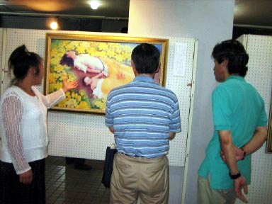 有些有缘人6天里来了三次,最后还要求与学员们合影,并在留言本中写道:“希望你们继续努力,我为你们祈祷,希望中国早日停止这场迫害。”还有的在留言本中写道:“我敬佩你们的精神,只要你们有什么活动,我都要来声援,我会尽力帮助你们。”并把自己的电话号码留下。这位先生还把他的太太和朋友带来观看画展。