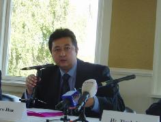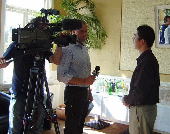 8月29日,丹麦法轮功学会召开新闻发布会,各大主流媒体到场采访。