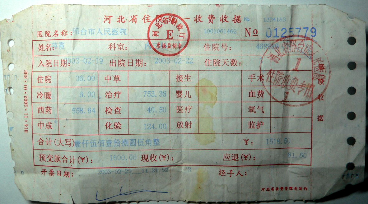 河北省邢台市大法弟子薛霞2003年2月22日被石家庄劳教所迫害致死,她身后留下的一双儿女,女孩叫王娇娇,1991年9月13日出生,现在邢台县予办实验学校上初二;男孩叫王超,1993年3月9日出生,现小学毕业,今年考入邢台县予办实验学校上初一。薛霞的丈夫叫王海河。因妻子炼法轮功的缘故,王海河被所在单位邢台市卫校开除。目前一家人的生活没有保障,而两个孩子在这几年的变故中,变得非常胆小。