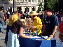 了解到了法轮功被无辜迫害乃至牵连到弱小的孩子们时,人们纷纷在征签表上签字,对中国法轮大法学员以及他们的孩子表示正义支持和深深的同情。