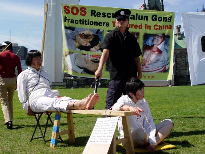 在反酷刑展现场,记者采访了来自多伦多的法轮功学员李女士,她说,“发生在中国的迫害已经六年了,胡锦涛上台后,迫害不但没有停止,反而越来越严重;虽然表面上不再宣传,但是转入了地下,实际上,连现在十几岁的孩子都抓。”