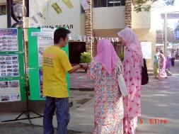 于是,我们学员安排了在9月5日、6日以及9日的下午3点至5点在该大学校园里洪法炼功、讲真象及征签活动。虽然当时正值上班时间,但是有多位学员都积极参与配合,大家在这难得的机会里,跟这所工艺大学的学生讲真象,让他们了解大法的真象,有的学生在当场就学炼功,而大多数了解真象的学生都在“呼吁停止迫害”的征签簿上,签名表示支持。