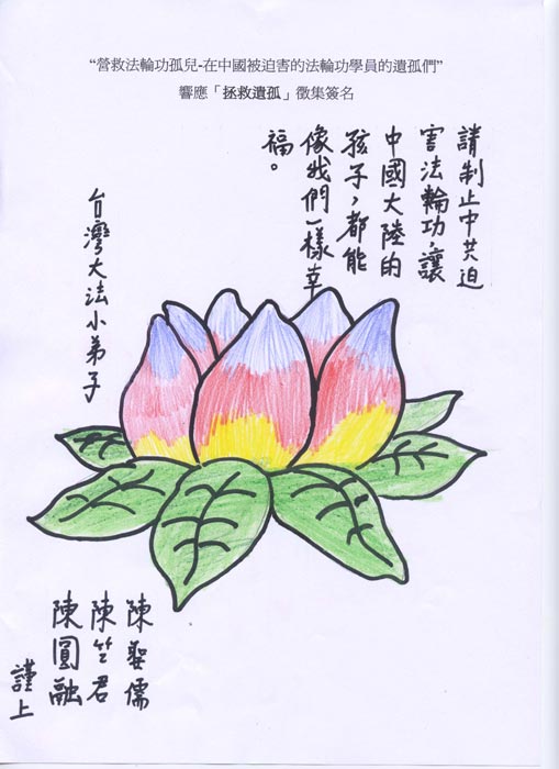 每场征签活动,看着个个善良的面孔,看着被真象影片触动而哭泣的孩童,听着孩子们真情的呼吁:“他们好可怜喔!赶快救他们吧!”我们不禁要说:维护自己的信仰没有错,而对一群好人的镇压绝对是错的!法轮功是佛法,从个人长远的生命来讲,应停止迫害法轮功;从国家的利益讲,也应停止迫害法轮功。善良的人们,请发挥道德良知,让我们大手牵小手签名声援营救受迫害的法轮功学员的遗孤,让这些孩子们能早日脱离梦魇,让他们和自由世界的孩子们一样幸福。