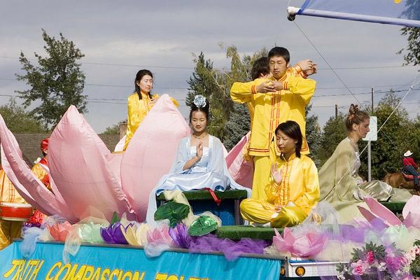 莲花点缀的花车引人注目,引起人们的赞叹,学员在车上炼功,身穿唐装的女学员或者小弟子在莲花丛中向人们挥手致意。整个过程中,人们向学员们挥手,友好的问候,并翘起大拇指。虽然有时会有强风,但是走在队伍前面打横幅的学员仍然微笑着向挥手的观众挥手致意。人群中的一位女士甚至向学员们合十问候。游行过程中时时都有人们索要大法资料,许许多多的儿童尽管还不能阅读,尽管知道那是纸而不是糖果,他们仍然急切的伸手要资料。