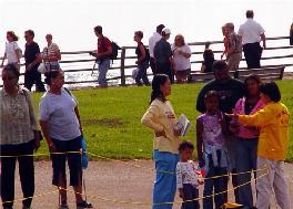 学员们也随时向身边的游览者讲真象,告诉他们正在中国发生的迫害,来此的目地;以及中共组织那些欢迎人群,是希望营造歌舞升平的景象,掩盖其杀人和侵犯人权的恶行。很多人明白了真象,当学员询问:“我们的横幅会不会挡住你们的视野?”他们纷纷说:“举高点。”