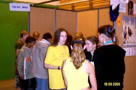 大法弟子们还送给孩子们,印有各民族小弟子炼功照片的书签和明信片,并告诉他们法轮功在中国被迫害的真象,年龄很小的孩子都能够听懂;并有的立刻跟所有的同伴,一字一句的重述大法弟子所讲的真象,还在征签表上签下了那纯真的善心。
