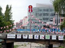 ![]() 濑户市陶瓷节的市容 | ![]() 日语写的“中国的骄傲、气功•法轮功、免费教功”等标志挂在入口处上方最醒目的位置 |