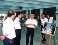 北港镇镇长徐忠彻到场参观。一边仔细的看画作,一边聚精会神听导览的解说,默默的了解每一幅画背后的故事。