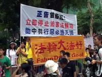 我们呼吁各界善良人士,包括良知尚存的广大中共人员,携手制止和停止对法轮功的人权迫害,释放所有被拘押的法轮功学员,法办镇压的元凶祸首,法办迫害法轮功的恶警和坏人,还法轮大法清白。这不仅是为内地同胞伸张正义,也是为了中华民族的道德回归与辉煌再造,也是在保障香港有一个尊重人权与法治的美好未来。