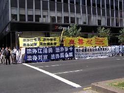 对于沃道夫酒店前的法轮功请愿地点,中领馆的一些官员亲自来到现场,和警察交涉施压,臭名昭著的亲共人士花俊雄也跑前跑后。大法弟子心定念正,一边发正念清除这些人背后的邪恶,一边一直和警察讲真象,告诉警察我们是非常平和的,胡上台两年多,惨无人道的对法轮功的迫害还在继续,国内受迫害的千千万万的法轮功学员没有任何机会发出声音,我们非常珍惜这个机会,就是希望胡能明白真象,立即停止迫害法轮功。警察们表示知道法轮功,同情法轮功。还一再表示给法轮功学员的位置是他们能给的最好的,也是离沃道夫酒店最近的。