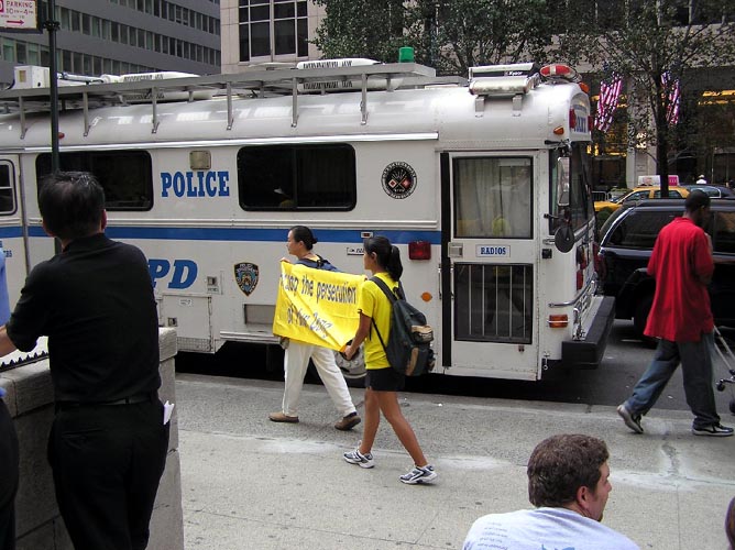 胡锦涛抵达纽约 法轮功学员呼吁停止迫害(图)