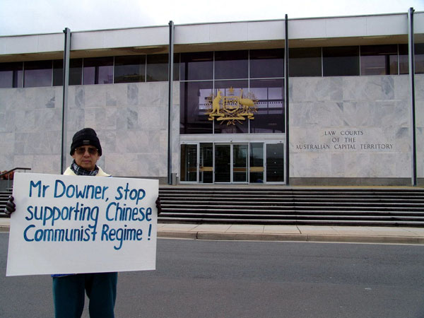 对于沃道夫酒店前的法轮功请愿地点,中领馆的一些官员亲自来到现场,和警察交涉施压,臭名昭著的亲共人士花俊雄也跑前跑后。大法弟子心定念正,一边发正念清除这些人背后的邪恶,一边一直和警察讲真象,告诉警察我们是非常平和的,胡上台两年多,惨无人道的对法轮功的迫害还在继续,国内受迫害的千千万万的法轮功学员没有任何机会发出声音,我们非常珍惜这个机会,就是希望胡能明白真象,立即停止迫害法轮功。警察们表示知道法轮功,同情法轮功。还一再表示给法轮功学员的位置是他们能给的最好的,也是离沃道夫酒店最近的。
