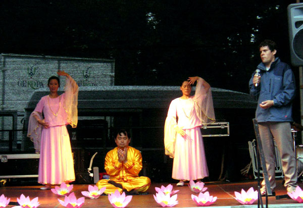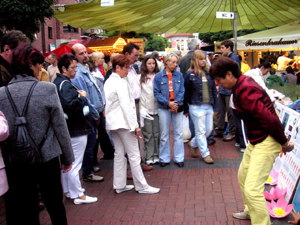 有的游客在买了书或是教功录像带之后,还询问了在哪可以学功。也有的游客说,看了大法的网页后,知道法轮功并不象中共当局宣传的那样;还当时就请学员教炼功动作。