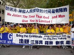 报导说,自去年以来在曼哈顿就到处都可以见到法轮功学员,现在有数百名(学员)举行集会,抗议中共对他们的迫害。中共于1999年禁止了法轮功。