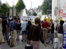 除了传单以外,我们也散发了许多荷兰语版的《九评共产党》。这篇大纪元的系列社论是迄今为止出版的最详尽、透彻揭露中共黑暗历史的文章。《九评》描述了中共的发家史及其使人民在恐惧中屈从的历次整人运动。说荷兰语的人们如今可以系统了解到中共自1949年以来的杀人历史,从消灭整个阶级到大跃进带来的大饥荒,到文化大革命,到“六。四”天安门屠杀。《九评》还揭露了仍在中国发生的对法轮功修炼者的迫害。