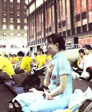 台湾来纽约的法轮功学员大约有上百位。洪小姐说,她们那一组十几位学员11日就到了,请愿活动后,他们还将继续停留一个月,在曼哈顿讲真象。14日夜间,洪小姐和一同来的70多岁的钟阿姨一起加入到守夜中直到凌晨4点多。令她感动的是,第二天早晨8点多,她才刚起来,钟阿姨早已收拾停当,准备参加又一天的活动了。