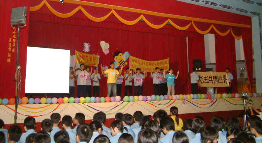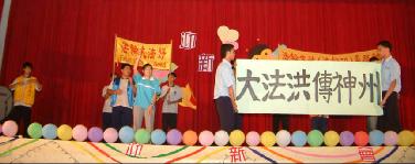 ![]() 社团师生协力演出舞台话剧 首幕主题“大法洪传神州” |