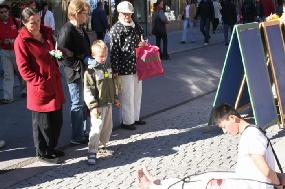 一位瑞典的女大学生,明白了真象后,又叫来了她的好朋友,两人一同在签字簿上签上了自己的名字。有一位男士签了名后还用手机告诉家人,让家人赶快过来看看中国正在发生的迫害。有的人不仅签了名还将自己的通信地址和联系电话都写在了签字簿上。有一对年轻的夫妇,写了两个地址,并对学员说,我们不在这个地址住时,在那个地址肯定会找到我们的。
