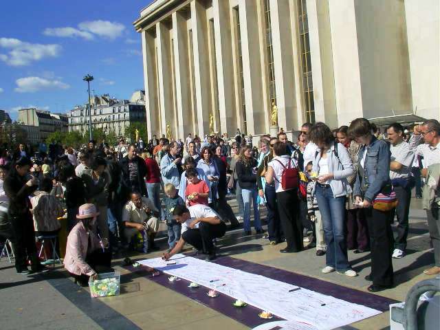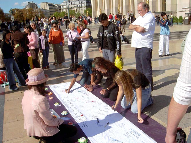 一位来自中国大陆的先生说:“我们在中国什么也看不到,这是我第一次有机会了解法轮功。”随后和学员交谈了一个多小时。一位在法国居住20多年的中国华侨观看了几个小时的演出,久久不肯离去。还有一位法国人得知活动内容是为了营救法轮功孤儿后,提出建议希望学员们能够向更多法国儿童机构讲真象并得到他们的支持。还有一位法国男孩询问:“我是信佛的,以前听说你们的功法很好,是不是可以炼?” 一位女士看到功法表演时,当场就学着做了起来。