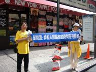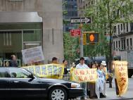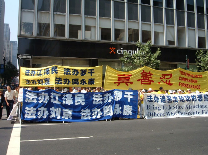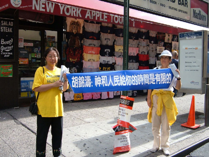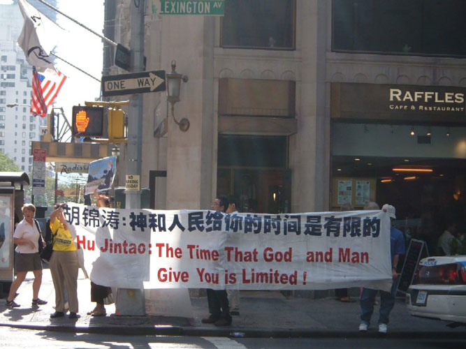 【明慧网2005年9月20日】2005年9月11日晚,胡锦涛一行离开多伦多去墨西哥访问,13日到美国纽约参加联合国会议,16日离开。我和多伦多的法轮大法弟子一起,到纽约参加了多项活动,向当地人洪法、讲真象,向胡一行传达我们的声音。