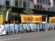 胡锦涛访美期间 法轮功学员请愿花絮(图)
