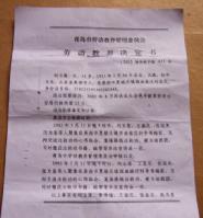 请人们阅读下面的几份“劳动教养决定书”。当您看完这些决定书的内容后,一定感慨万分。我想:在自由民主国度里生活的人们看到这些