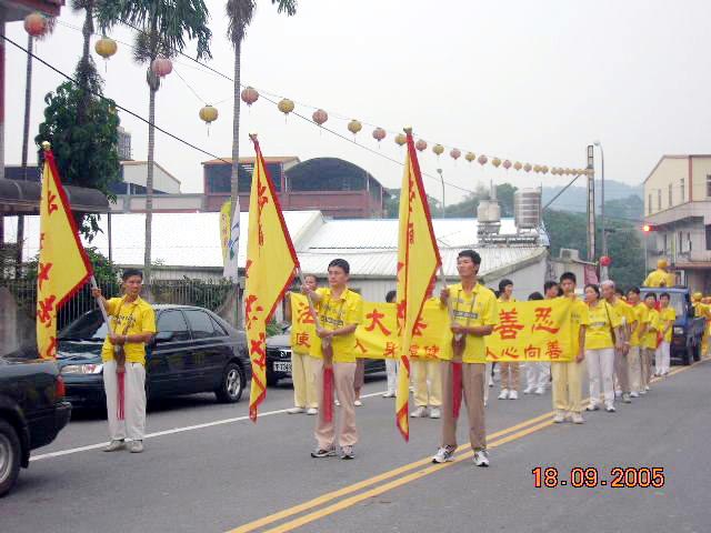 主办单位也特别加派警察与车子为法轮功游行队伍开导,两旁的民众说从来没看过这样盛大阵容与精彩的表演,腰鼓打得如此整齐划一,直称动作好优美,有的看得目瞪口呆的,民众不断的报以热烈的掌声,直至表演队伍远离他们的视线,以表达他们的兴奋与鼓励。