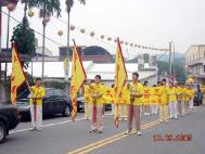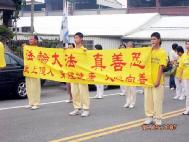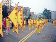 主办单位也特别加派警察与车子为法轮功游行队伍开导,两旁的民众说从来没看过这样盛大阵容与精彩的表演,腰鼓打得如此整齐划一,直称动作好优美,有的看得目瞪口呆的,民众不断的报以热烈的掌声,直至表演队伍远离他们的视线,以表达他们的兴奋与鼓励。