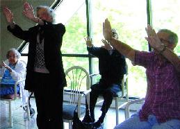 犹太教规主管格拉斯曼欢迎大家来艾登布卢克社区一起炼法轮功。这个月格博也计划到狩猎崖山顶(Huntcliff Summit)的朝阳老年社区教炼法轮功。