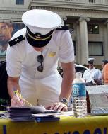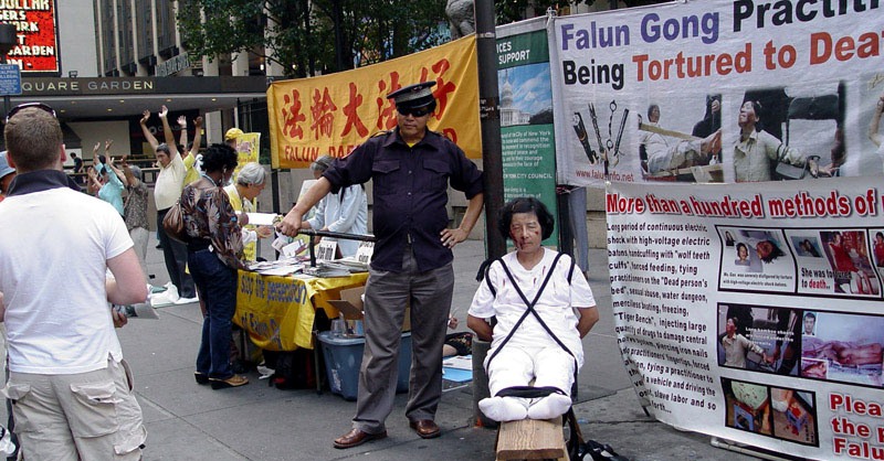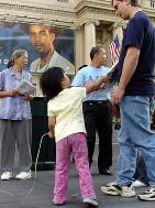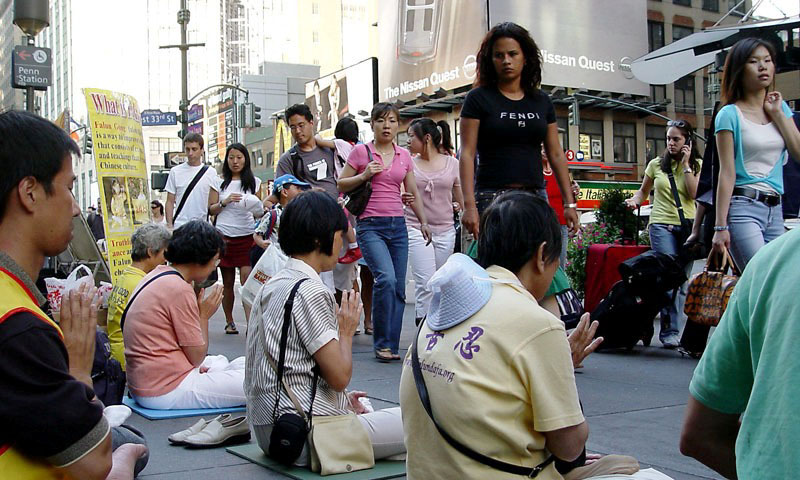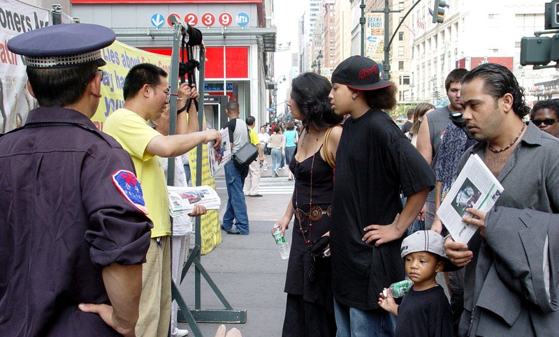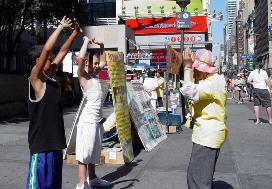 【明慧网2005年9月25日】这一天是中秋(9月18日)。在七大道三十三街,与曼哈顿其它反