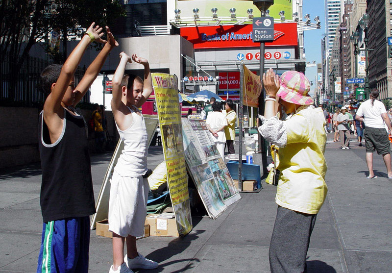 在曼哈顿讲真象的台湾学员(图)