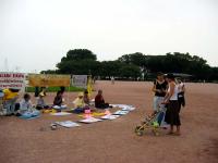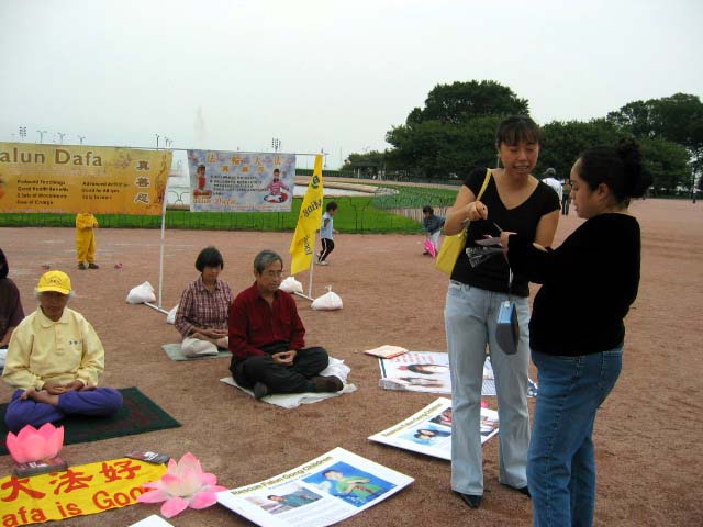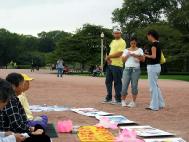 当一个小姑娘和学员们一起学叠纸莲花的时候,她的母亲走过来询问,学员们向她讲述了法轮功,发生在中国的迫害和营救孤儿的真象后,她说:“我的公司两个月前刚刚在中国大陆投资,下个月我就要启程去中国考察了,我真的没有想到还会有这样的事情发生。”在和学员们交流了近半个小时后,她说:“我可不可以多带走一些资料,我要在我的中国之行告诉所有的中国人发生了什么,我想我应该重新考虑我公司的投资了。”