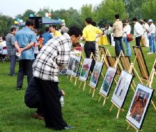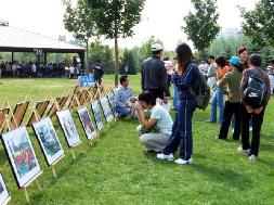 表演节目之间穿插了法轮功在中国大陆被迫害的真象讲解,以及法轮功洪传世界的故事。现场还有一个关于法轮功洪传世界的小型图片展,吸引了很多观众,不少人还摄影留念。