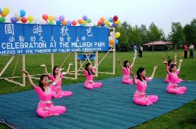![]() 法轮功学员表演仙女舞 | ![]() 白雪的演唱 |