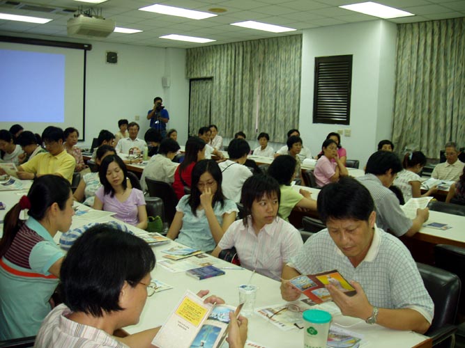 ![]() 幼稚园小朋友也来参观 | ![]() 小学生及陪同的家长静听导览 |