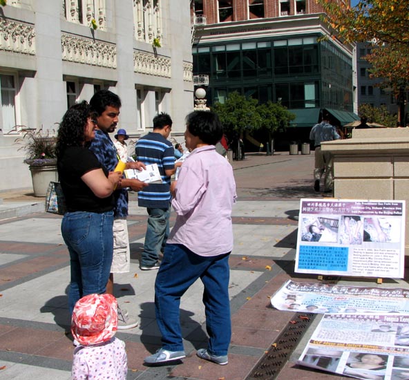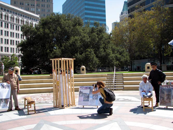 当天,旧金山湾区的法轮功学员在奥克兰市政府大楼前还举办了反酷刑展、真象图片展、和新闻发布会,呼吁帮助停止迫害法轮功,法办迫害法轮功的所有恶人恶警。