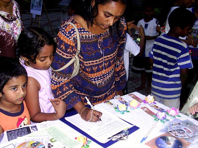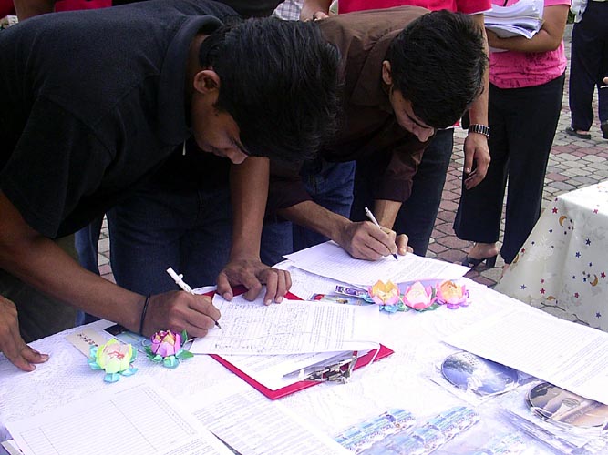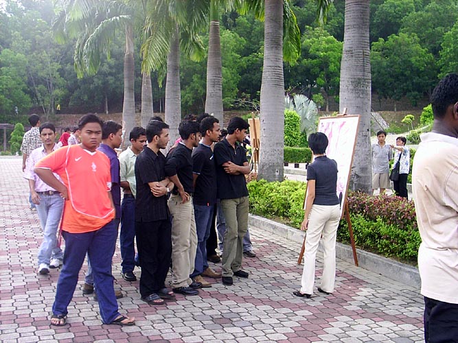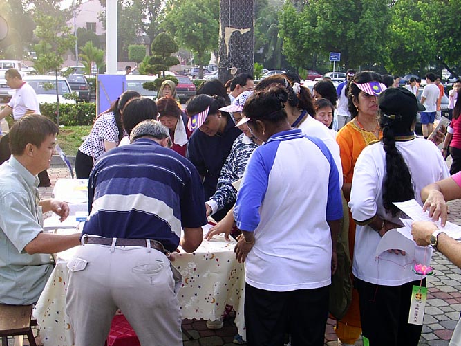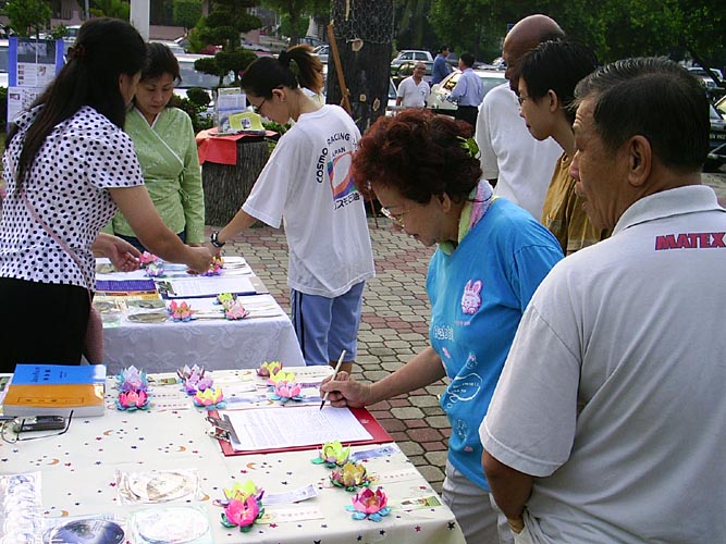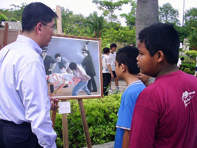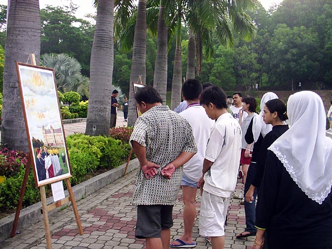 有一位马来族民众在看了“美术展”后,表示很遗憾现在才知道法轮功受到迫害。他很感动法轮功被迫害超过6年,学员们一直坚持以大善大忍的精神,和平的方式讲真象。他希望我们能够多办这样的活动,让更多的人知道法轮功的真象。
