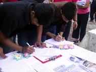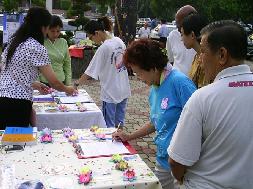 此地大多数民众,当知道了公园有“美术展”,不分男女老少、不分种族都前来观赏。他们在欣赏画后,纷纷想進一步了解法轮功。当知道中共迫害法轮功从来没有停止过,有许多表示非常惊讶,在这个文明时期还发生着如此不文明的迫害。看到画中法轮功学员遭受的酷刑折磨,有些人忍不住再看下去。有的人惊讶于,虐待法轮功学员的竟然是公安。了解真象的人们,纷纷签名支持呼吁停止迫害法轮功;还有许多人想要开始学炼法轮功。