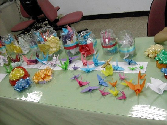 课堂中渐渐收集到众多缤纷的祈愿纸鹤