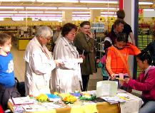 ![]() 人们边排队,边看法轮功真象,边等待学员给他们书写“世界需要真善忍”的祝福卡片 | ![]() 了解真象 |