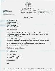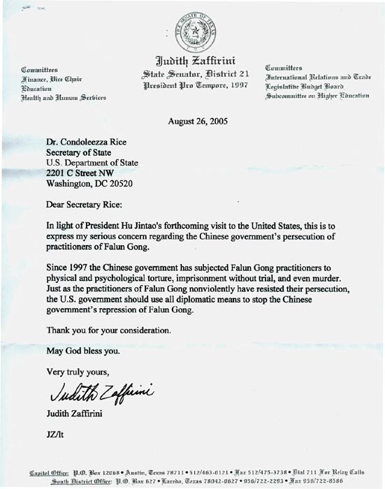 鉴于中国领导人胡锦涛即将访问美国,我在此对中共政府迫害法轮功学员表达严重关切。