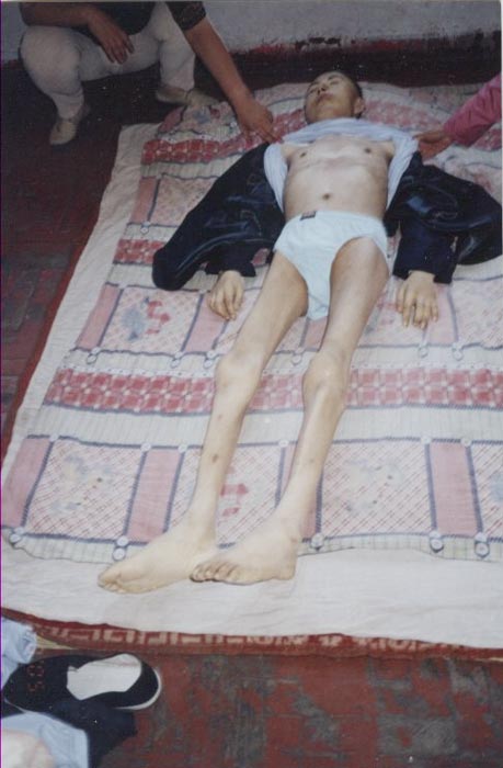 刚刚回家的吴春龙骨瘦如柴,佝偻着身子,神志不清,目光呆滞,没有任何表情,连自己的父亲都不认识了。他脸色苍白,脸的左侧比右边大很多,一只眼睛严重充血,显然是被毒打所至。亲友问他话他不吱声,没有反应,好象没有记忆、没有思维。