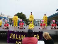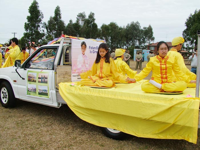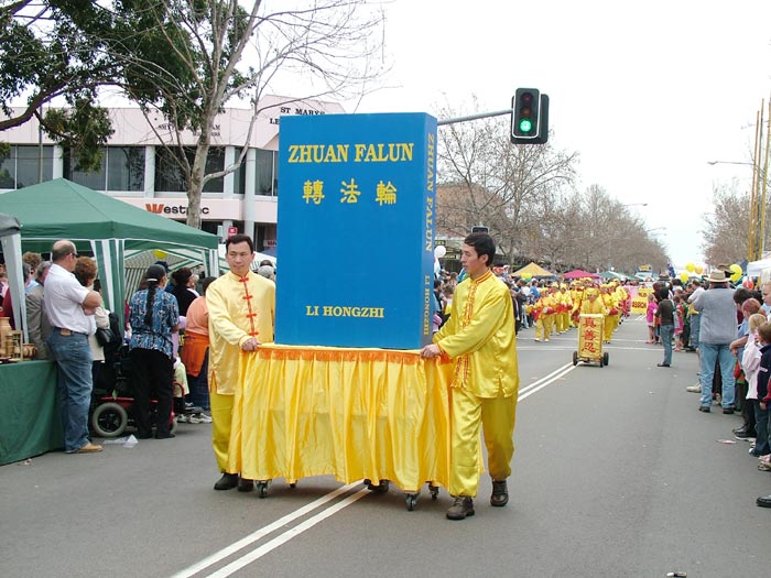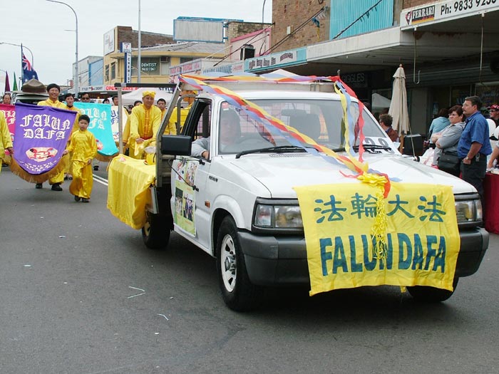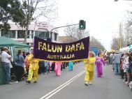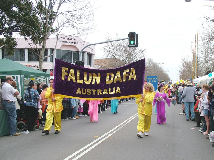 【明慧网2005年9月5日】9月3日,悉尼西区的圣玛丽镇举行了一年一度的迎春节,上万的民众观看了节日的,在大游行上法轮功团体格外引人注目,成为了该镇大游行的焦点,法轮功队伍所经之处不断地响起阵阵的掌声,在法轮功的摊位上要求学功和了解真象的人也络绎不绝。