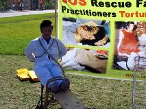 这位参加“反酷刑”演示的法轮功学员曾经在中国亲身遭受过迫害
