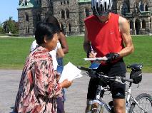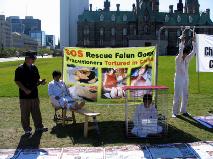 【明慧网2005年9月7日】二零零五年九月三日,星期六,来自多伦多、蒙特利尔、金斯顿等城市的部份法轮功学员在渥太华国会山庄前举办反