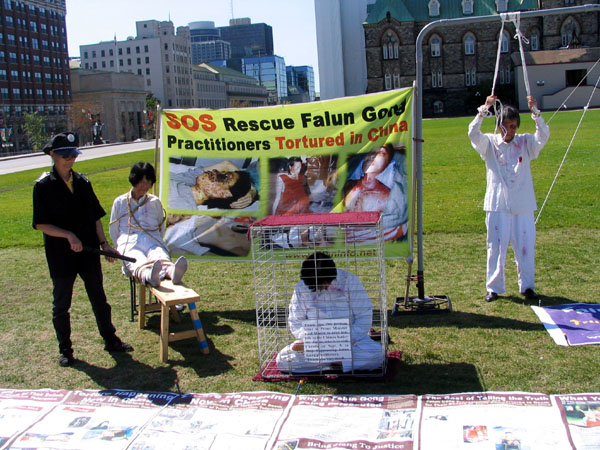 渥太华法轮功学员办反酷刑展讲真象(图)