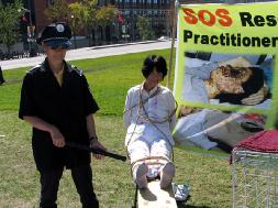 【明慧网2005年9月8日】9月3日,来自多伦多、蒙特利尔、金斯顿等城市的部份法轮功学员在渥太华国会山庄前举办反酷刑展,向民众揭露中共对法轮功的残酷迫害,同时呼吁胡锦涛停止迫害法轮功。